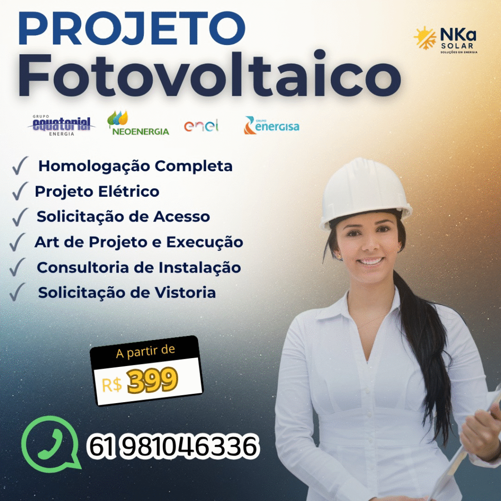 SOLICITAR ORÇAMENTO GRÁTISSomos referência em projetos de energia solar com homologação em todo o Brasil e execução completa em Brasília e Goiás.